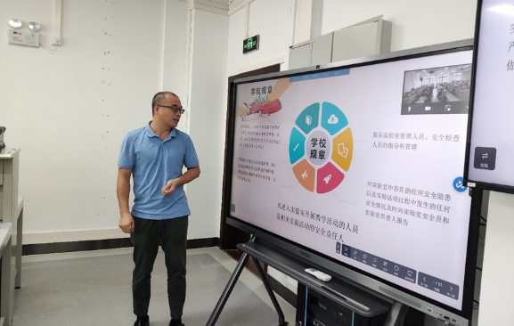 首先,电子与信息工程实验教学中心副主任陈翔副教授进行培训动员。陈老师根据学校实验室安全管理规定以及实验平台的实际情况强调了此次培训的必要性和重要性,并对实验教学中心教辅老师、任课老师、助教应承担的职责做了详细说明。