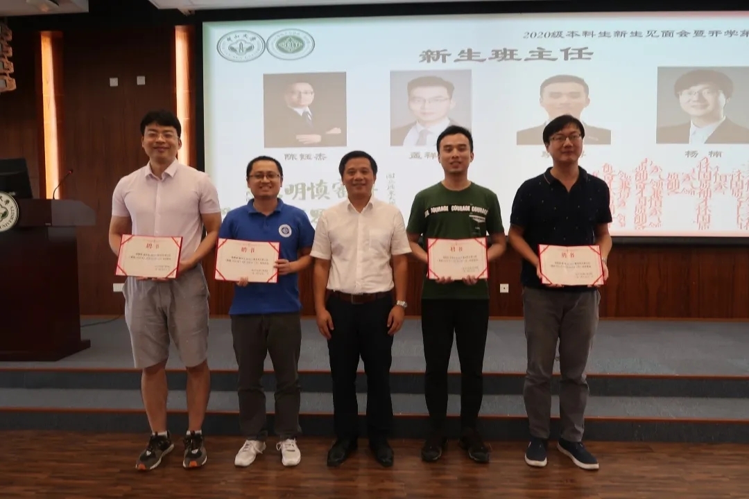随后,莫华书记为今年学院新选聘的陈钰杰、孟祥雨、杨楠、李显博四位2020级新生班主任颁发聘书。