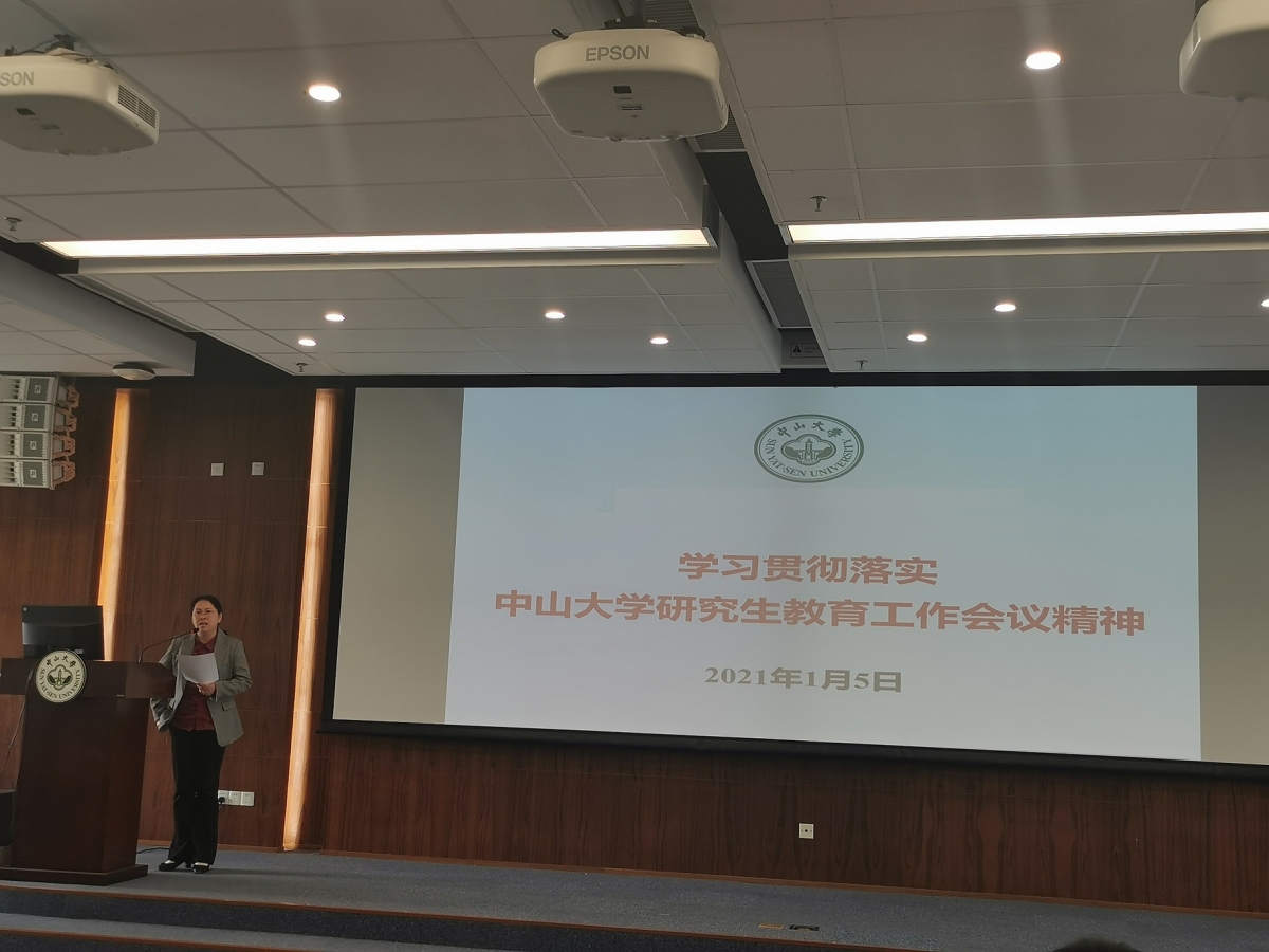 会上,佘峻聪副院长具体传达了学校研究生教育工作会议精神。罗俊校长在大会主题报告中指出,新时期我校研究生教育工作需把握新机遇,坚持“四为”方针,聚焦立德树人根本任务,强化“三个面向”引领,围绕“德才兼备、领袖气质、家国情怀”人才培养目标,优化学科与专业布局,提高研究生导师队伍水平,完善一流的研究生培养体系,全面、全方位、全过程提高研究生培养质量,遵循“扩大规模、提升质量、守住底线”的工作主线,全面开创新的工作局面。佘峻聪副院长表示,学院将在研究生培养工作中坚决贯彻落实学校研究生教育工作会议精神,提高政治站位,加强作风建设和学风建设,牢固树立底线意识和红线意识,做到“学在中大、追求卓越”。学院党政将齐抓共管,统筹规划,严格把关,不断完善研究生培养体系,推动研究生培养提质增效。