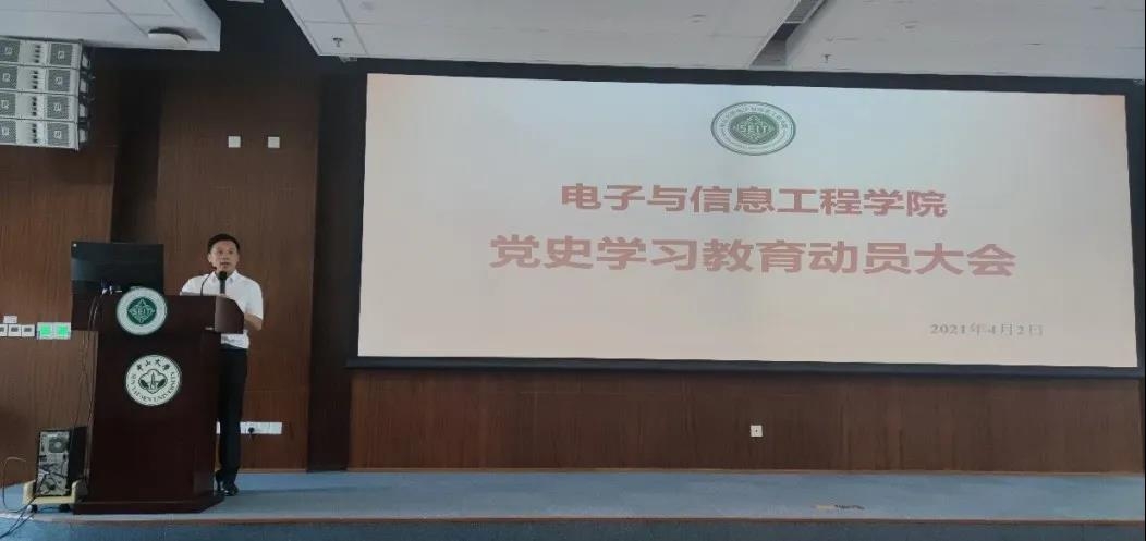 莫华书记在动员讲话中重点传达了学校党史学习教育动员大会的精神。学校党委从深刻认识开展党史学习教育的重大意义、突出抓好党史学习教育重点、认真落实党史学习教育工作安排、开展党史学习教育务求取得实效等方面,对学校开展党史学习教育进行了动员部署,提出了明确要求。莫华书记强调学院全体党员、干部要深刻认识到,开展党史学习教育是党的政治生活中的一件大事,也是今年贯穿全年的头等大事。我们要对表对标,深刻学习领会习近平总书记重要讲话精神,结合学校、学院实际,高标准高质量开展党史学习教育。学院已成立党史学习教育领导小组及工作小组,各支部、各位党员要认真落实工作安排,树立正确的党史观,切实为群众办实事解难题,并做好宣传报道。