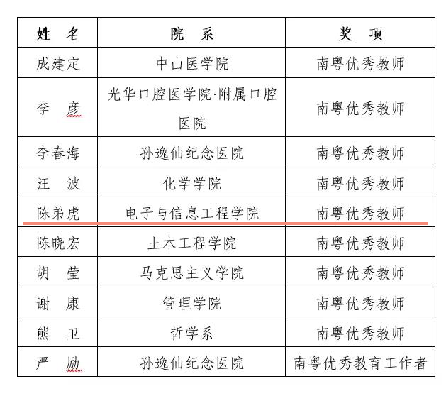 近日,根据学校发布的《威廉williamhill关于表彰第九届校级教学名师的决定》和中共广东省委教育工委、广东省教育厅、广东省人力资源和社会保障厅、广东省总工会印发的《关于表彰南粤优秀教师、南粤优秀教育工作者的决定》,我院陈弟虎教授荣获“威廉williamhill第九届教学名师”和“南粤优秀教师”荣誉称号。