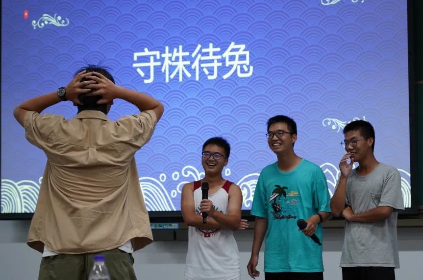 今朝欢乐便无愁。同学们踊跃加入游戏,你划我猜,好不快活。负责比划的同学或毫无头绪,抱头发懵,或手舞足蹈,发出奇声时,引发同学们的阵阵爆笑,负责猜的同学反应迅速时,同学们掌声欢呼如雷,现场气氛愈发热烈。