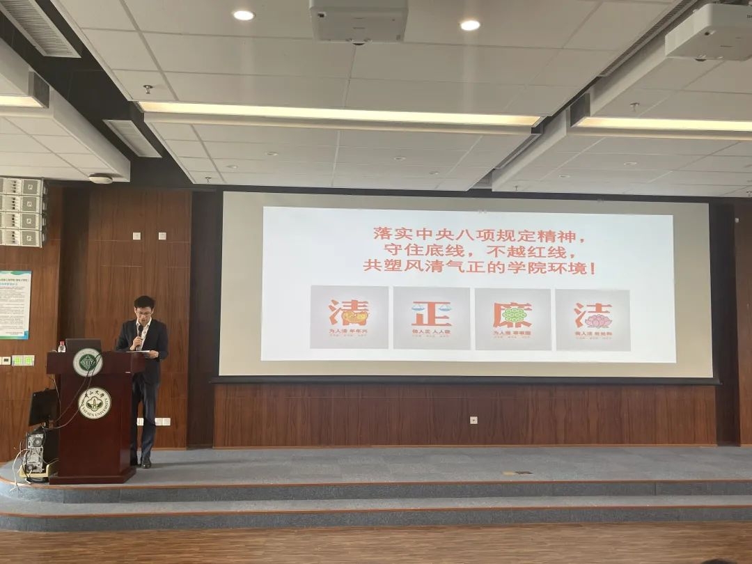 为了进一步落实全面从严治党的总体要求,塑造风清气正的育人环境,刘飞书记作全院纪律教育学习月专题警示教育。他从近年来学校科研经费管理使用违规违纪典型案例入手展开教育,强调全体教职工特别是广大科研人员要深刻吸取案件教训,举一反三,坚决落实中央八项规定精神,进一步增强依法依规管理使用科研经费的责任感和自觉性。同时,他还带领全体教职工仔细学习了师德师风建设的相关制度文件,并强调学院教职工要牢记初心使命,严守学术规范和师德师风规范,务必要守住底线、不越红线,杜绝违规违纪行为发生,共同营造好学院风清气正的教书育人环境。