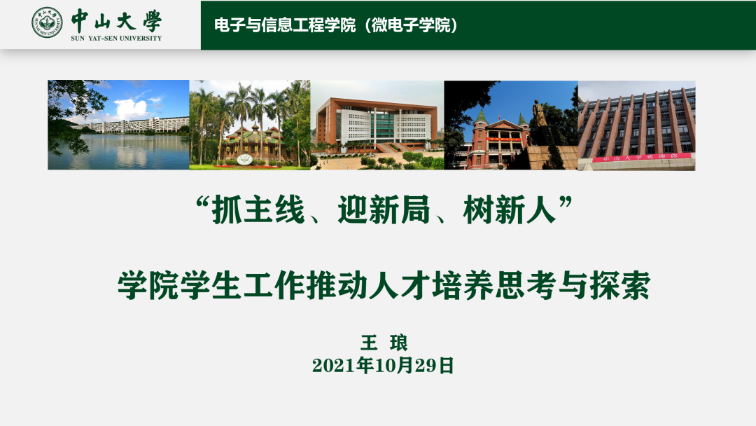 今年是学校大类招生、集中培养的第一年,学校对本科人才培养提出更高的期望和要求,为助力与会人员对本科生人才培养新形势有更全面地理解认识,会议开始,王琅副书记首先做了“抓主线、迎新局、树新人—学院学生工作推动人才培养的思考与探索”主题报告。他首先带领大家系统学习了习近平总书记关于高等教育的重要论述,指出人才培养的主线就是要认真贯彻落实立德树人根本任务,努力培养德智体美劳全面发展的社会主义建设者和接班人。具体到日常工作中,就是要深化构建“五个融合”育人体系,切实推进“两升两降两保”,帮助本科生夯实专业知识、锻炼强健体魄、赓续红色基因、铸就担当精神,真正做到“扎好马步”、德智体美劳五育并举、全面发展,为将来报效祖国打牢基础;随后,王书记又从“学工团队新架构”、“学生群体新形势”、“人才培养新要求”三个层面,具体分析学院人才培养所面临的新情况,希望与会人员能够于变局中开新局,积极拥抱变化,勇敢迎接挑战;接着,王书记还结合学院学生工作实际,重点从“五育并举”、“五个融合”、“两升两降两保”三个专项汇报了学院相关实践与探索,帮助与会人员更清楚学院工作思路和整体布局,从而更好地凝聚共识、形成合力。王琅副书记最后特别感谢学院学工团队在上一学年的辛苦付出,要求大家要不断提高政治站位、强化大局意识,主动深入学生、落实工作职责,抓住工作重点、提高工作效率,守好安全底线、提高培养质量,继续共同努力把学生培养成为堪当民族复兴重任的时代新人。