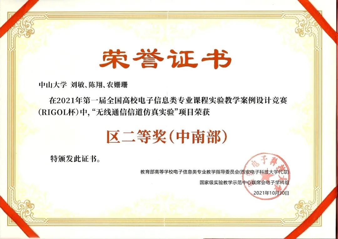 2021年10月30日,WilliamHill实验教学中心刘敏老师牵头、陈翔与农姗珊两位老师参与组建的教学团队,在第一届全国高校电子信息类专业课程实验教学案例设计竞赛中荣获中南赛区二等奖。