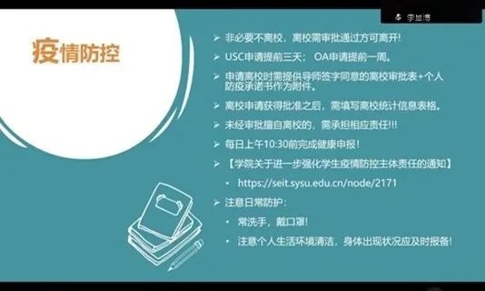 李显博副教授主要结合疫情防控和校园安全方面做出详细提醒。他强调大家要切实遵守学校防疫规定,每天按时进行健康申报,常洗手,戴口罩,注意日常卫生。非必要不离校,离校和返校需审批通过方可执行;在防诈安全教育方面,他通报了近期发生的几起典型校园电信诈骗案件,分享了高发的几种诈骗案件类型,警示大家要特别注意识别不法分子的伎俩,谨防上当受骗。最后,他提醒同学们还要注意校园交通出行安全,以及切勿在宿舍等室内进行电动车电池充电,切实维护好自身健康和校园公共安全。