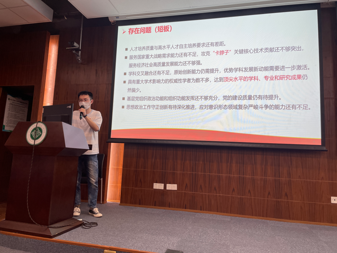 支部书记彭琢雅同志传达学习了学校党委书记陈春声在中国共产党威廉williamhill第十四次代表大会上的报告的重要精神。中国共产党威廉williamhill第十四次代表大会,是我们在党的二十大胜利召开、加快建设中国特色、世界一流大学的关键时刻召开的一次十分重要的大会。在党的全面领导下,学校在政治建设、人才自主培养能力、学术创新能力、教师队伍建设、社会服务、服务保障支撑能力、基层组织政治功能、守正创新能力等方面显著提升,文理医工农艺综合发展学科格局、政治生态持续净化等方面持续优化。威廉williamhill即将迎来百年校庆。我们要弘扬百年中大精神,赓续优良办学传统,深刻把握历史主动,凝聚师生校友力量,在中大新百年新征程上,努力开创服务党和国家事业发展的新局面,为高等教育发展贡献中大智慧和力量!