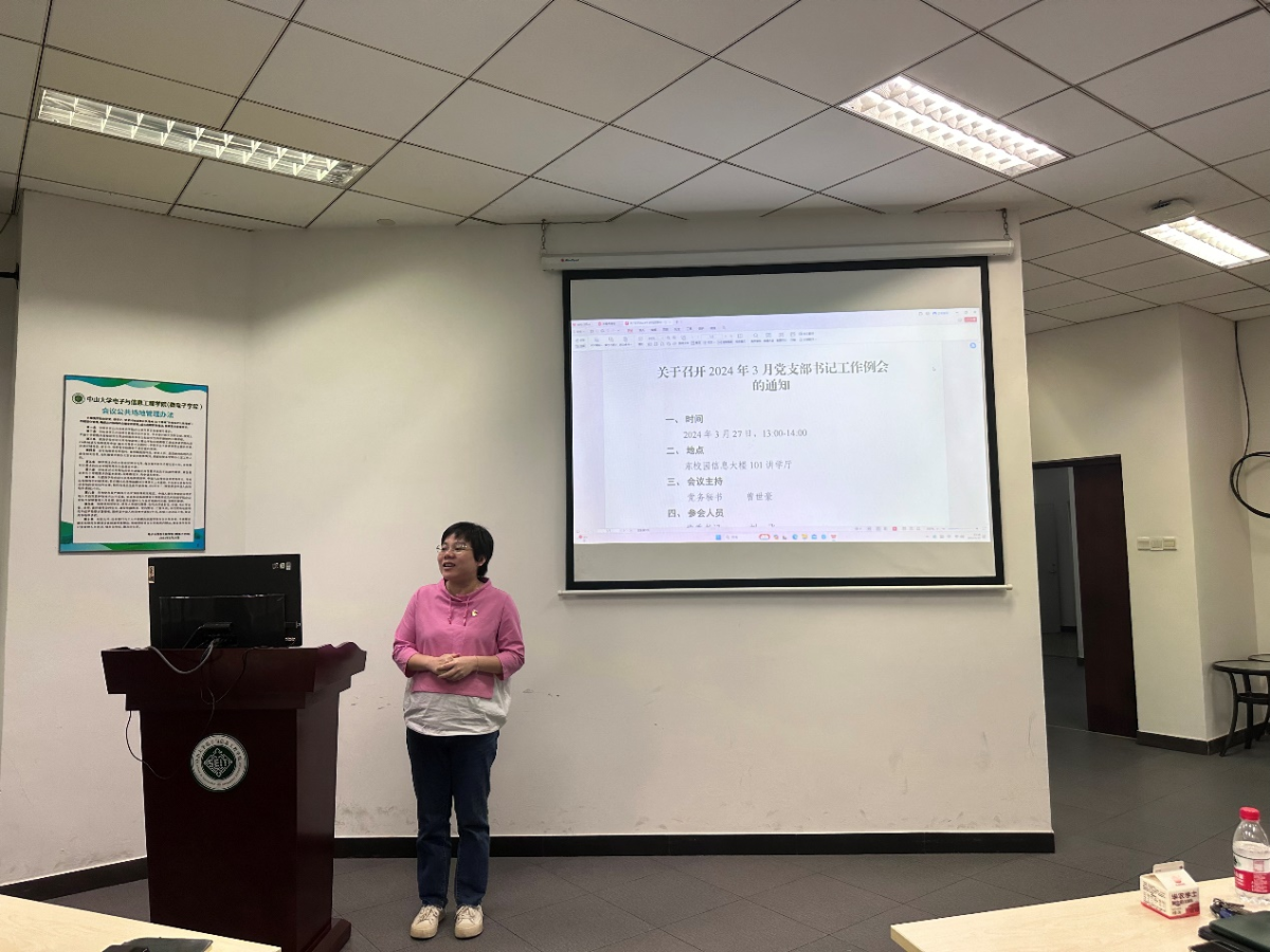 会上,刘飞书记向与会人员传达学习了3月组织生活要点。刘书记强调,各党支部要坚持“第一议题”学习,把学习贯彻习近平总书记重要讲话精神作为 “三会一课”、主题党日的重要内容。为进一步夯实基层党建,提升学院党组织的凝聚力和战斗力,刘书记提出三点要求:一是做好年度组织生活计划,认真开好头起好步;二是加强交流互鉴,争先创优,向先进集体或个人学习好的经验做法;三是积极融入学院中心工作,以党建引领学院事业高质量发展,争创佳绩献礼中大百年校庆。