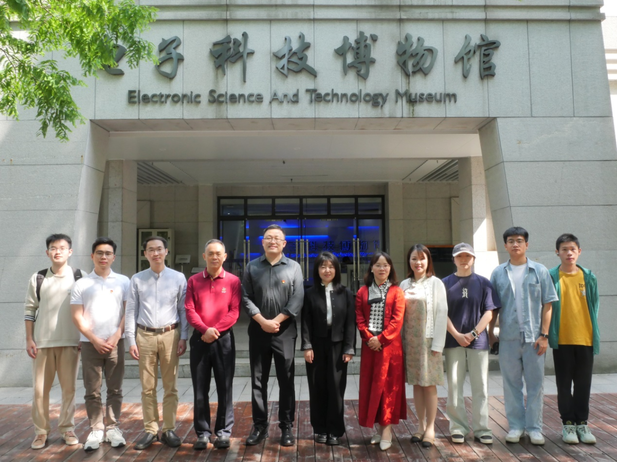 4月25日上午,刘飞书记一行到电子科技大学电子科学与工程学院调研交流。电子科学与工程学院党委副书记张铱晗对我院一行表示热烈欢迎,并带领参观了电子科技博物馆。在座谈环节,李斌院长简要介绍了电子科学与工程学院的学科情况、特色研究方向以及对外合作交流的具体做法,张书记则详细介绍了电子科学与工程学院的组织架构、党建工作以及特色做法等情况,重点分享了学习贯彻习近平新时代中国特色社会主义思想主题教育的做法和成效以及正在开展的党纪学习教育的工作安排。