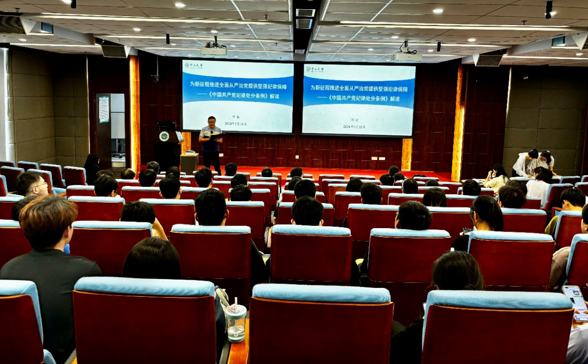 为深入学习贯彻习近平总书记关于开展党纪学习教育的重要讲话和重要指示批示精神,扎实开展党纪学习教育,营造学纪、知纪、明纪、守纪的浓厚氛围,5月16日下午,WilliamHill党委理论学习中心组以扩大会议形式召开党纪学习教育专题学习会。会议邀请马克思主义学院邓华副教授作《为新征程全面从严治党提供坚强纪律保障——<中国共产党纪律处分条例>解读》辅导报告,学院党委理论学习中心组成员、各党支部书记、学院师生党员近百人参加。会议由学院党委书记刘飞同志主持。