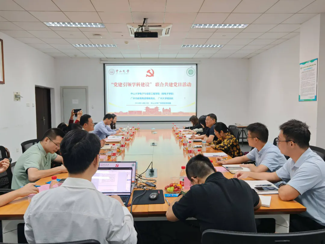 2024年10月25日下午,广州市教育局高等教育处、广州大学规划处领导一行到访我院调研交流,并与我院联合开展“党建引领重点学科建设”主题党日活动。学院党委刘飞书记、教职工第一党支部和党政办公室多名教工党员共同参加活动。活动由我院刘飞书记主持。