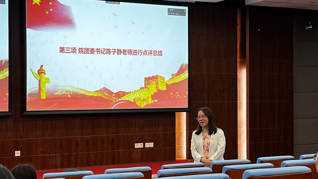 活动最后,学院团委书记陈子静老师作总结点评。她充分肯定了本次联合党日活动的成效,指出通过“理论+案例+研讨”的立体化学习模式,既深化了党员对中央八项规定精神的理解,又将纪律要求与科研实践紧密结合,为学术诚信、团队协作和服务群众提供了行动指引。陈老师寄语全体党员:“要始终绷紧纪律之弦,在科研攻关中锤炼作风,在日常生活中涵养正气,以青年党员的担当维护党的先进性与纯洁性。”