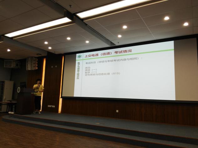 之后是14级学长分享经验部分。张榕瑜同学分享保研经验,给出关于成绩要求、前期准备等意见;罗小凡同学分享本校考研经验,介绍了考试的科目内容以及自己的准备工作;马水平同学分享了就业经验,介绍了一些企业岗位的区别以及如何选择;王长义同学分享了外校考研的经验,介绍了笔试和面试注意事项以及个人心得;王安琪同学分享了申请出国留学经验,介绍了申请流程以及科研经历准备。